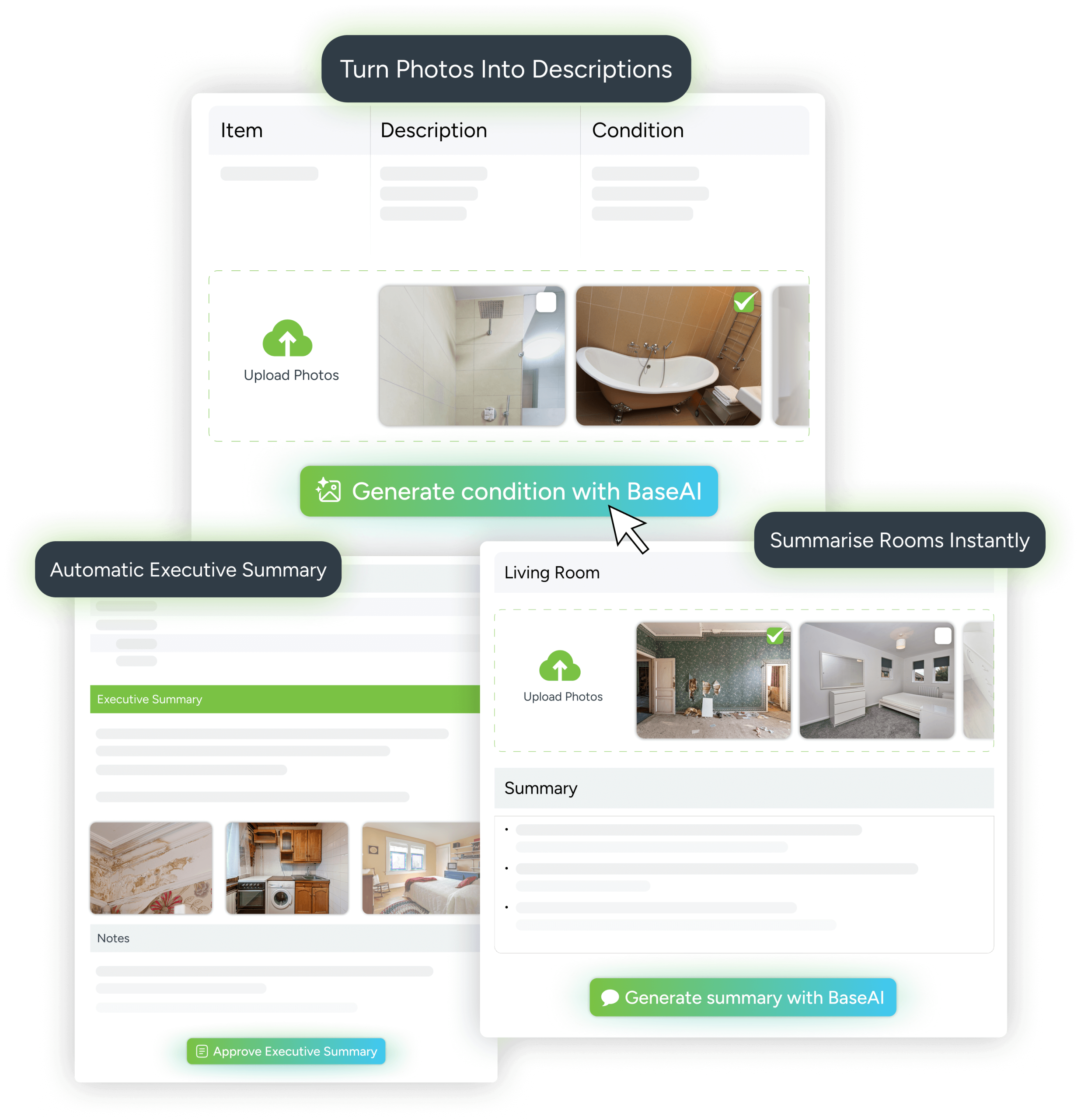 BaseAI instantly turns your property inspection photos and notes into professional, audit-ready reports.